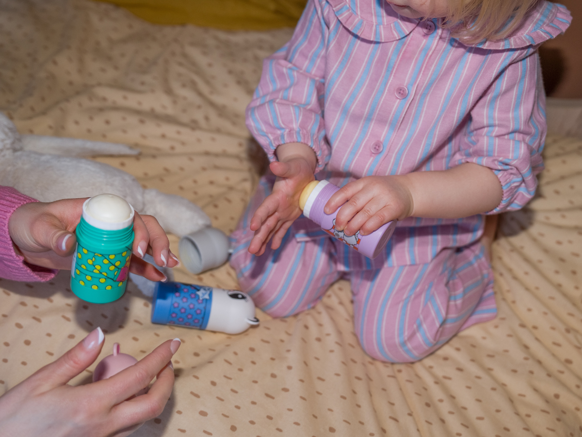 Our refillable sticks are sensory, comforting, and easy for kids to use themselves.